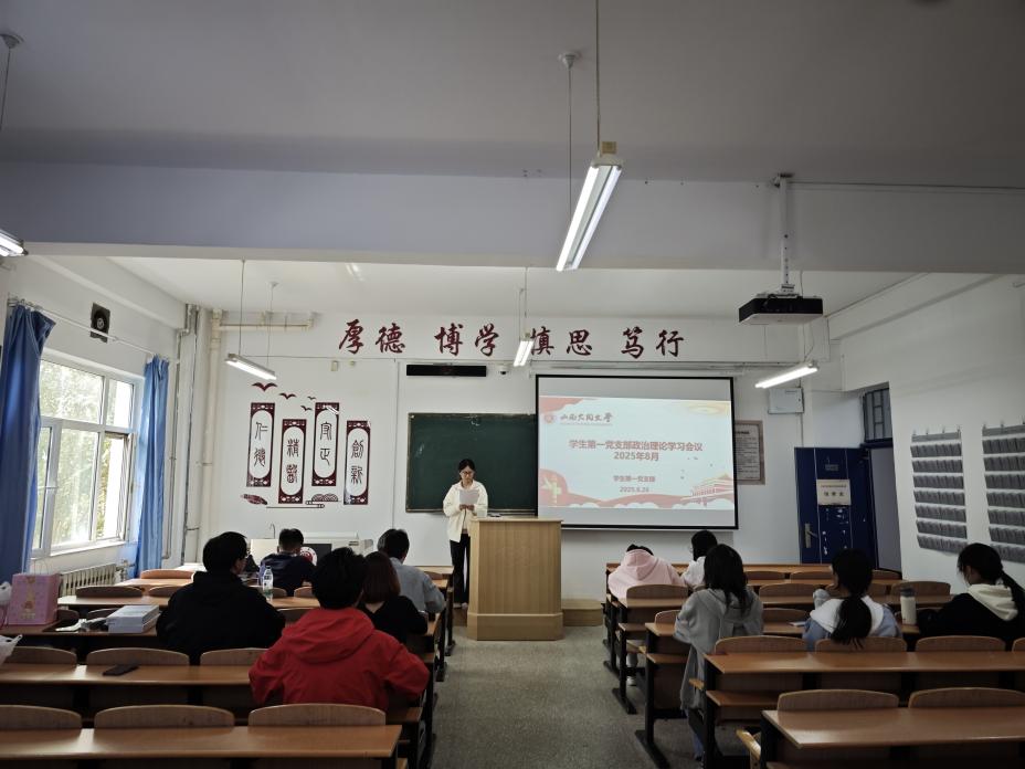 为进一步加强党员理论武装,筑牢纪律意识,2025年8月26日下午3:00,中医系学生第一党支部在仁和楼412教室召开政治理论学习会议。支部全体党员参加学习。会议聚焦习近平总书记考察上海重要讲话精神、民生保障、纪律整治及省委全会精神,通过领学、研读、研讨等形式,强化党员政治担当,筑牢思想根基。