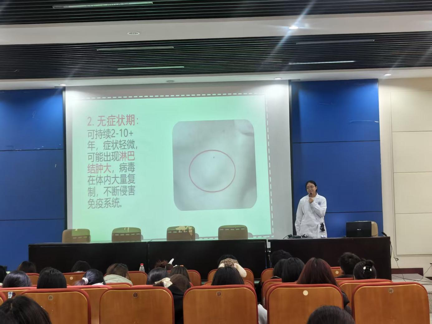 同时,他们也聚焦艾滋病预防主题,系统讲解了HIV病毒的传播途径、防控要点及认知误区,结合大学生群体的特点,重点强调了安全防护、定期检测的重要性,普及了校园免费检测资源和暴露后阻断知识。她通过真实案例警示大家远离高危行为,同时倡导消除对感染者的歧视,传递包容友善的理念。