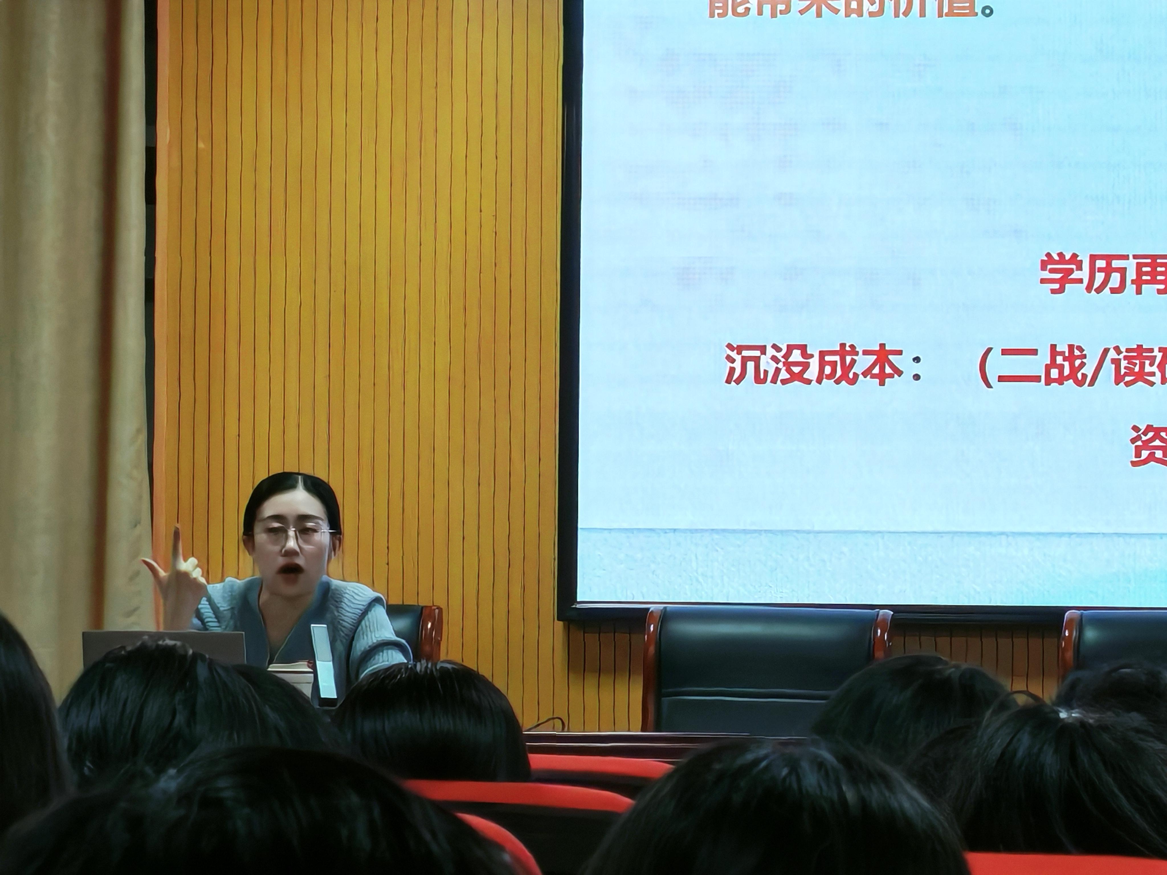 讲座中,杜婧老师提出“考研三区定位法”,指导学生依据初试成绩与目标院校往年复试线分差,制定差异化复试、调剂策略;同时详细讲解调剂时间节点、信息获取渠道,帮助学子把握调剂机会。针对考研“二战”抉择,她引入“沉没成本”概念,提醒学生结合自身基础、家庭支持等条件理性考量,警惕借考研回避就业的心态,强调招聘方更看重个人实际价值创造能力。